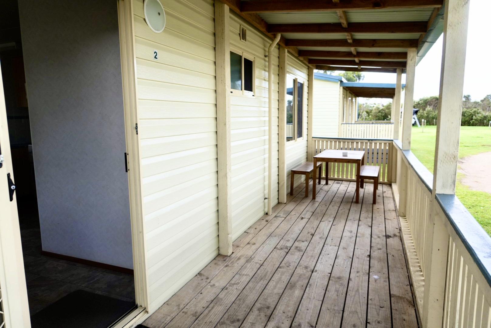 6. Enclosed veranda area: The enclosed veranda area adds extra space to the cabin, offering guests an outdoor-like experience while still being protected from the elements.
